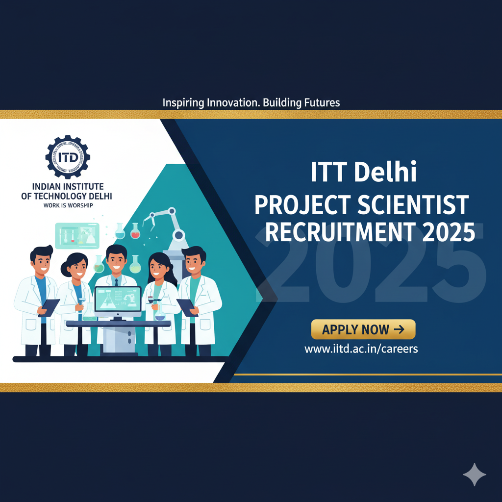 Indian Institute of Technology Delhi (IIT Delhi) has released an official notification for Project Scientist Recruitment 2025. Eligible candidates can apply online for 01 vacancies from 17-11-2025 to 02-12-2025. Read the complete details about eligibility criteria, age limit, selection process, and how to apply below.